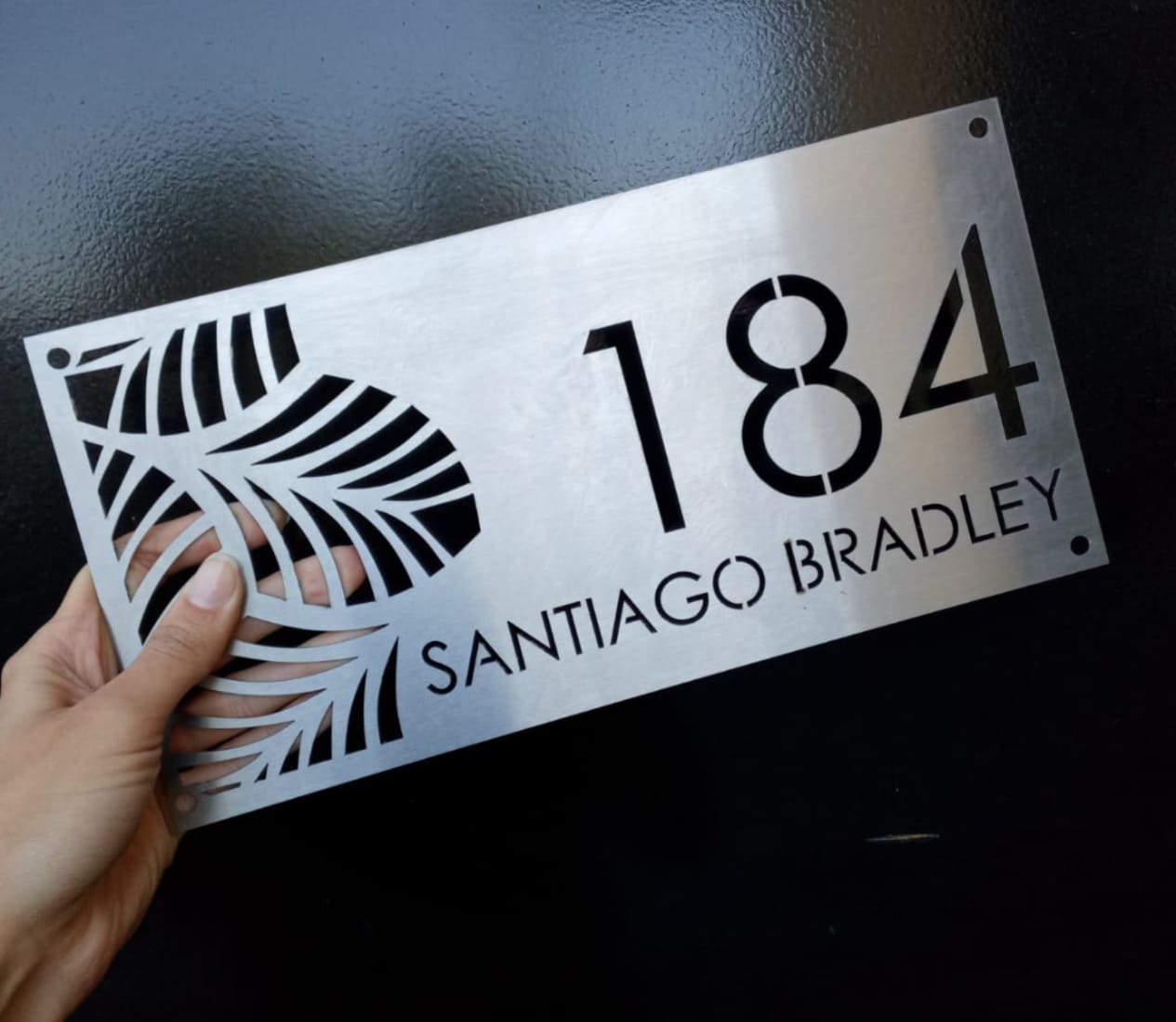 Nuestras placas y números domiciliaros son hechos en acero inoxidable. Estan pensados para fachadas exteriores por su resistencia a la intemperie.